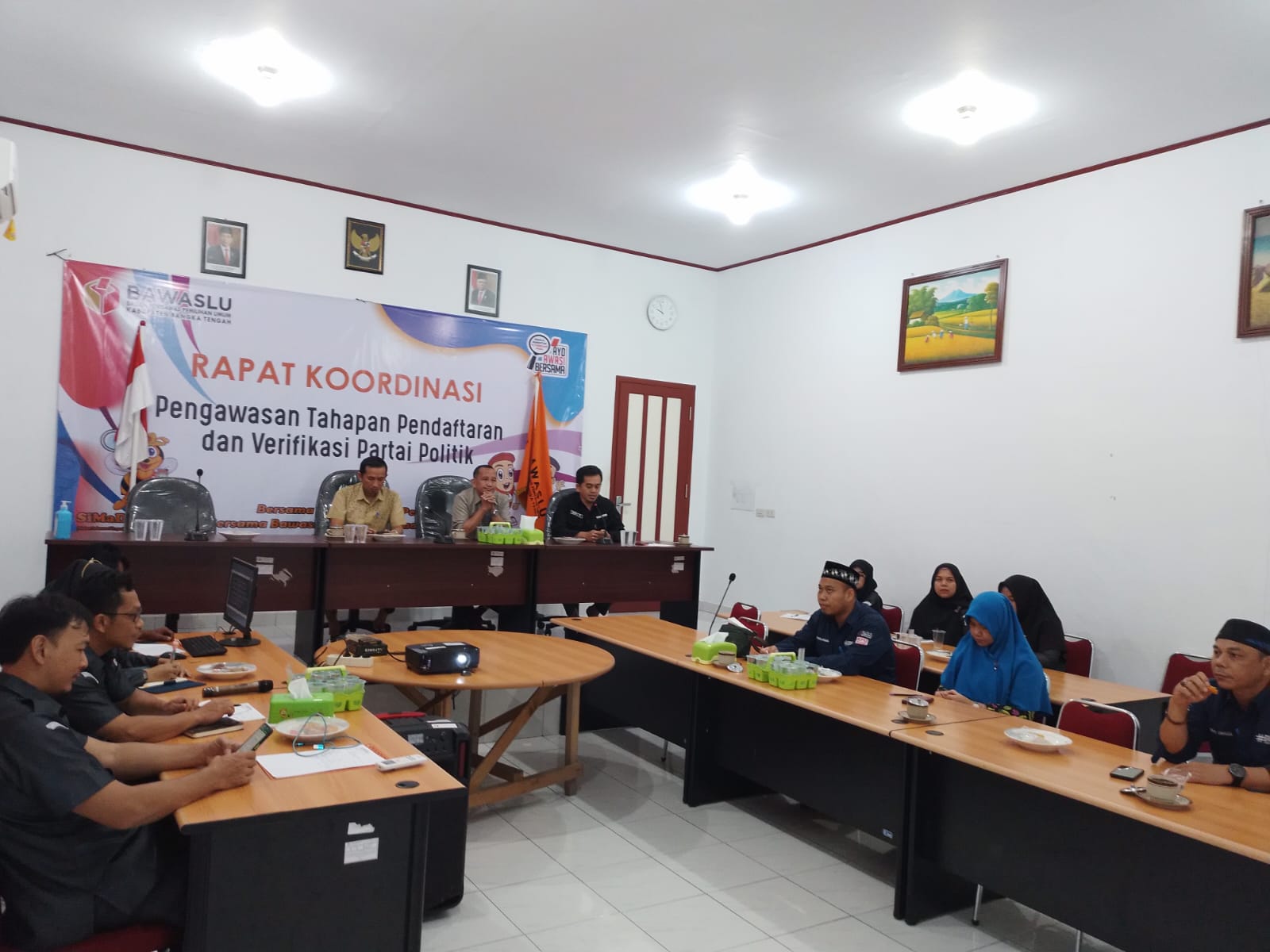 Memimpin rapat koordinasi tersebut Ketua Bawaslu Kabupaten Bateng, Robianto memberikan apresiasi kepada KPU Kabupaten Bateng yang sudah bekerjasama dengan baik dalam memberi ruang untuk Bawaslu Kabupaten Bateng mengawasi pelaksanaan klarifikasi keanggotaan Partai Politik.